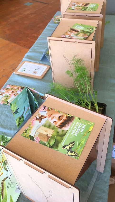 La boîte à chenilles est idéal pour observer la métamorphose (chenille - chrysalide - papillon) à la maison, au jardin d'enfants, à l'école, dans les groupes de jeux, dans les crèches et aussi dans les maisons de retraite.